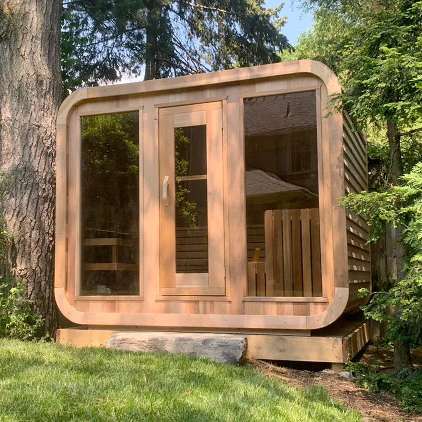 Depending on the model, we make sure to specify which Rodeo Sauna models are designed for either indoor or outdoor use. For outdoor setups, we recommend placing the sauna on a level, weather-proof surface with proper electrical protection.