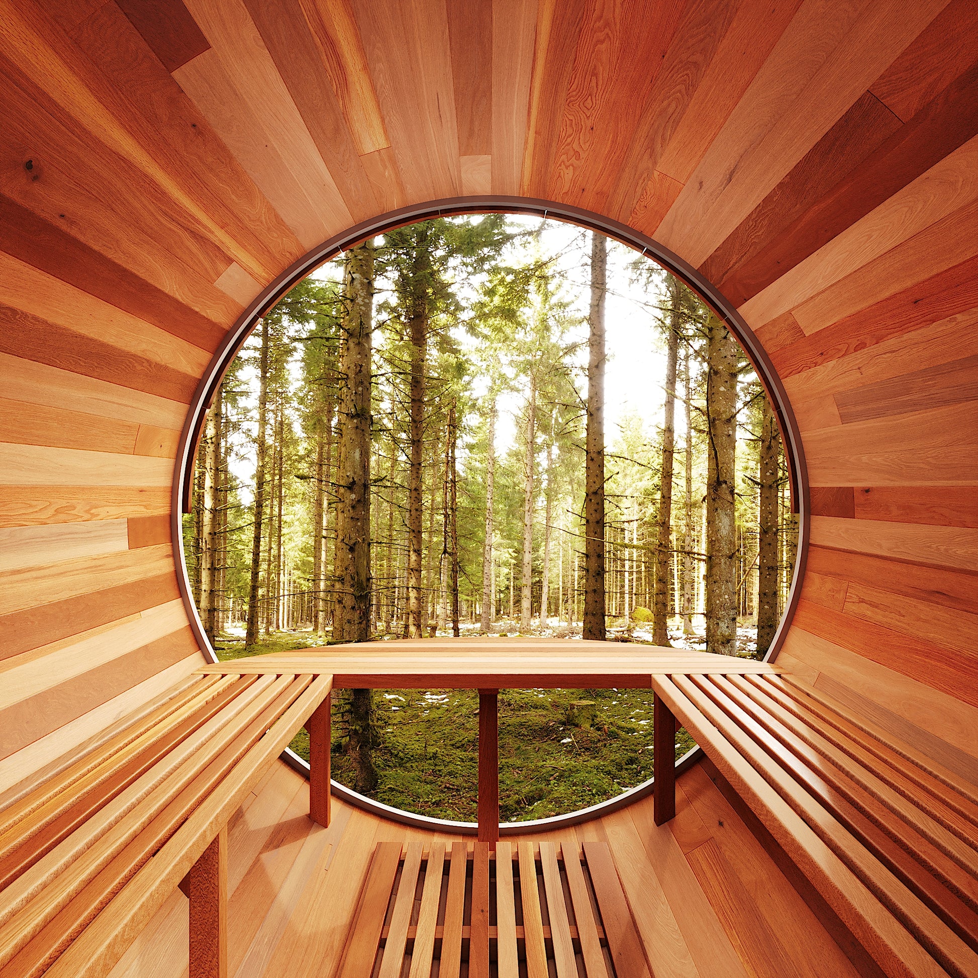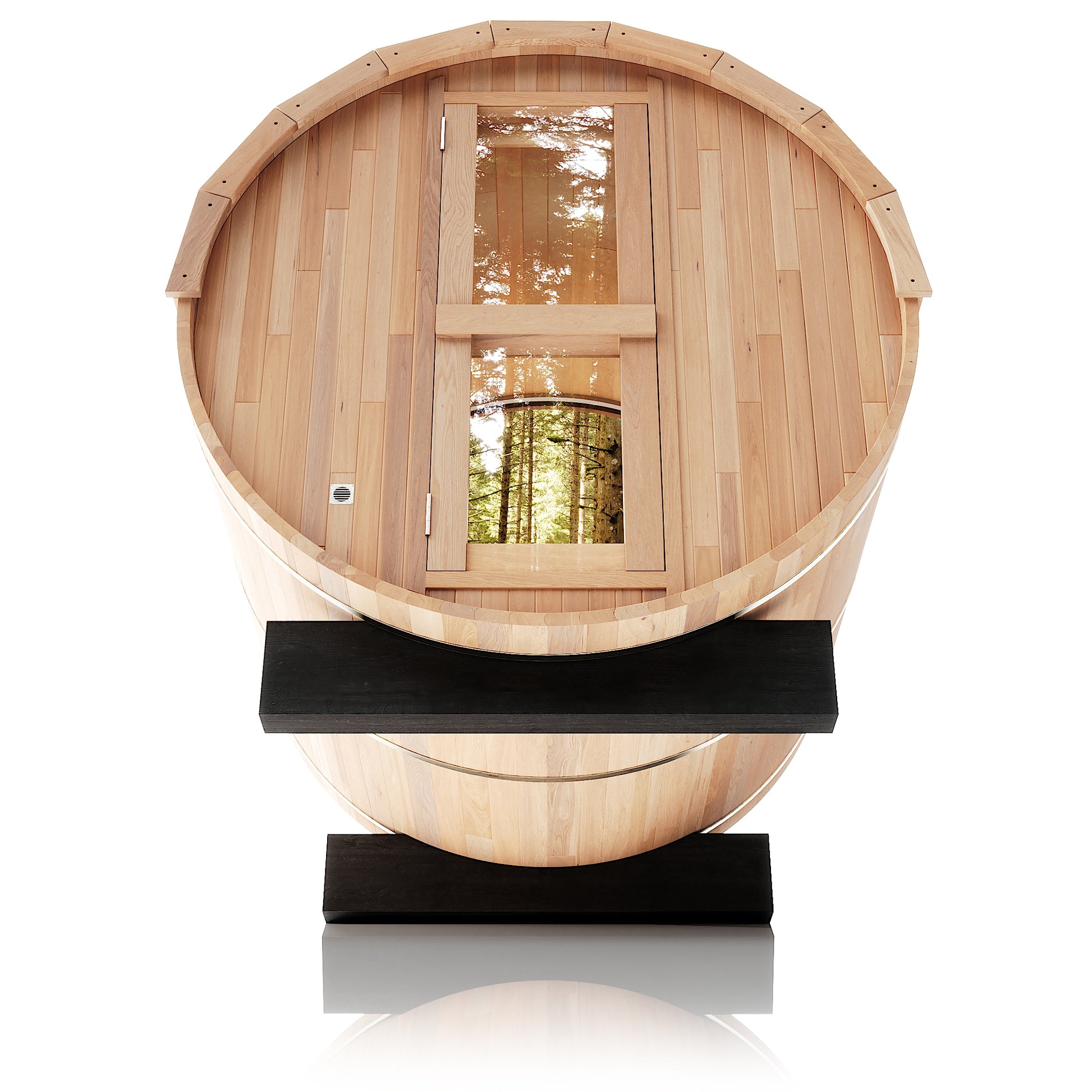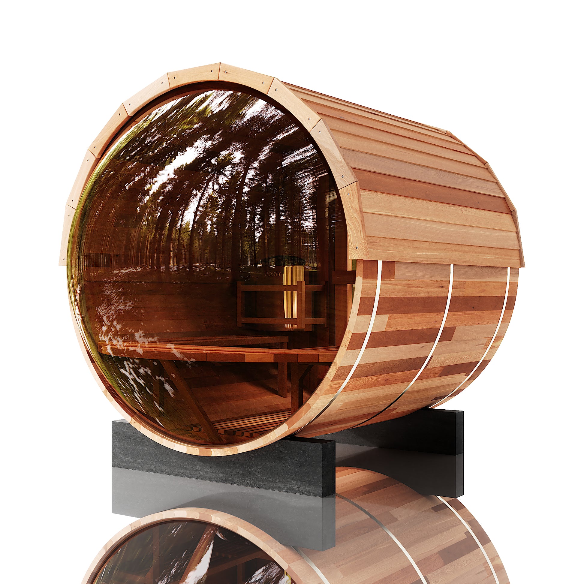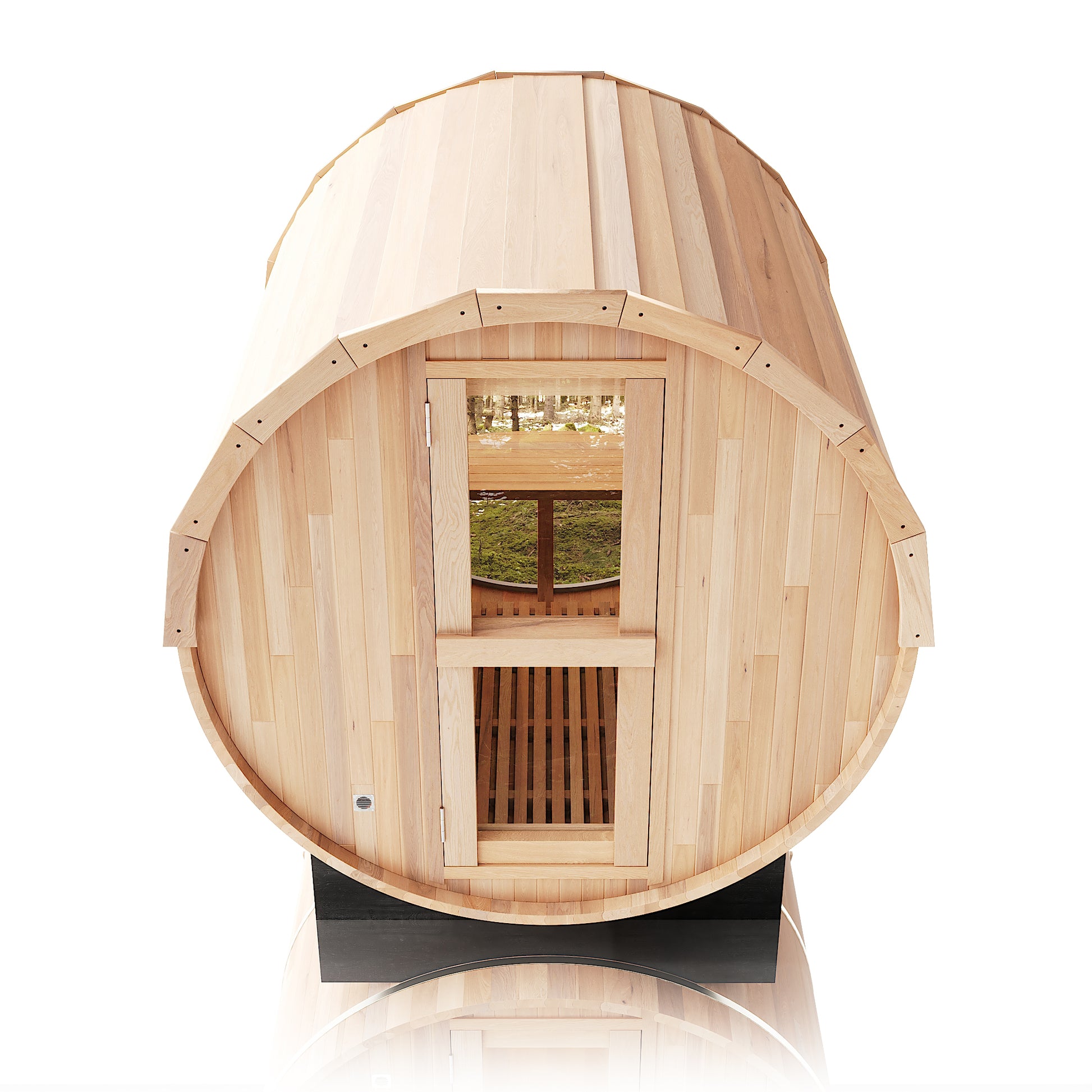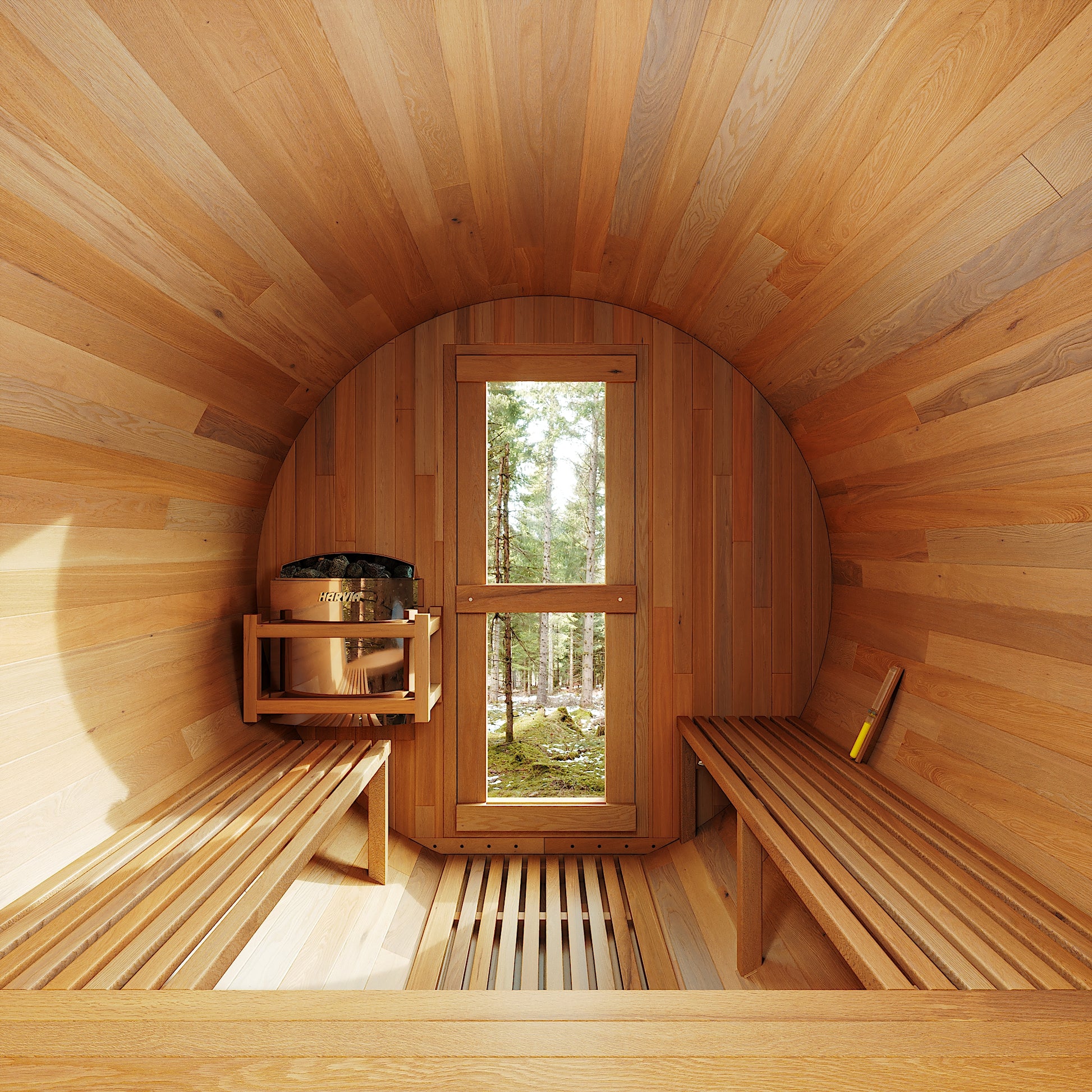 The Trailblazer sauna is designed for 4–6 people and is available in premium Hemlock or Red Cedar wood, offering natural durability, excellent insulation, and resistance to warping, with Red Cedar adding rich aroma and enhanced moisture protection; it is powered by a Harvia SW60 electric heater delivering 6.0 kW of heat on 220V / 240V with a 30A current, and provides a temperature range of 0–195°F for consistent sauna sessions. Each unit includes a complete accessory set with a wooden bucket and spoon, anti-crack volcanic stones for steam generation, a sandglass timer, a thermo-hygrometer, and explosion-proof lighting, while construction highlights include a waterproof asphalt-tiled roof with sealed joints to prevent leaks, a heat-resistant wooden door handle, a breathable vent hole for fresh airflow, high-temperature explosion-proof lighting, and an 18-inch-wide bench designed for comfortable reclining or lying down.