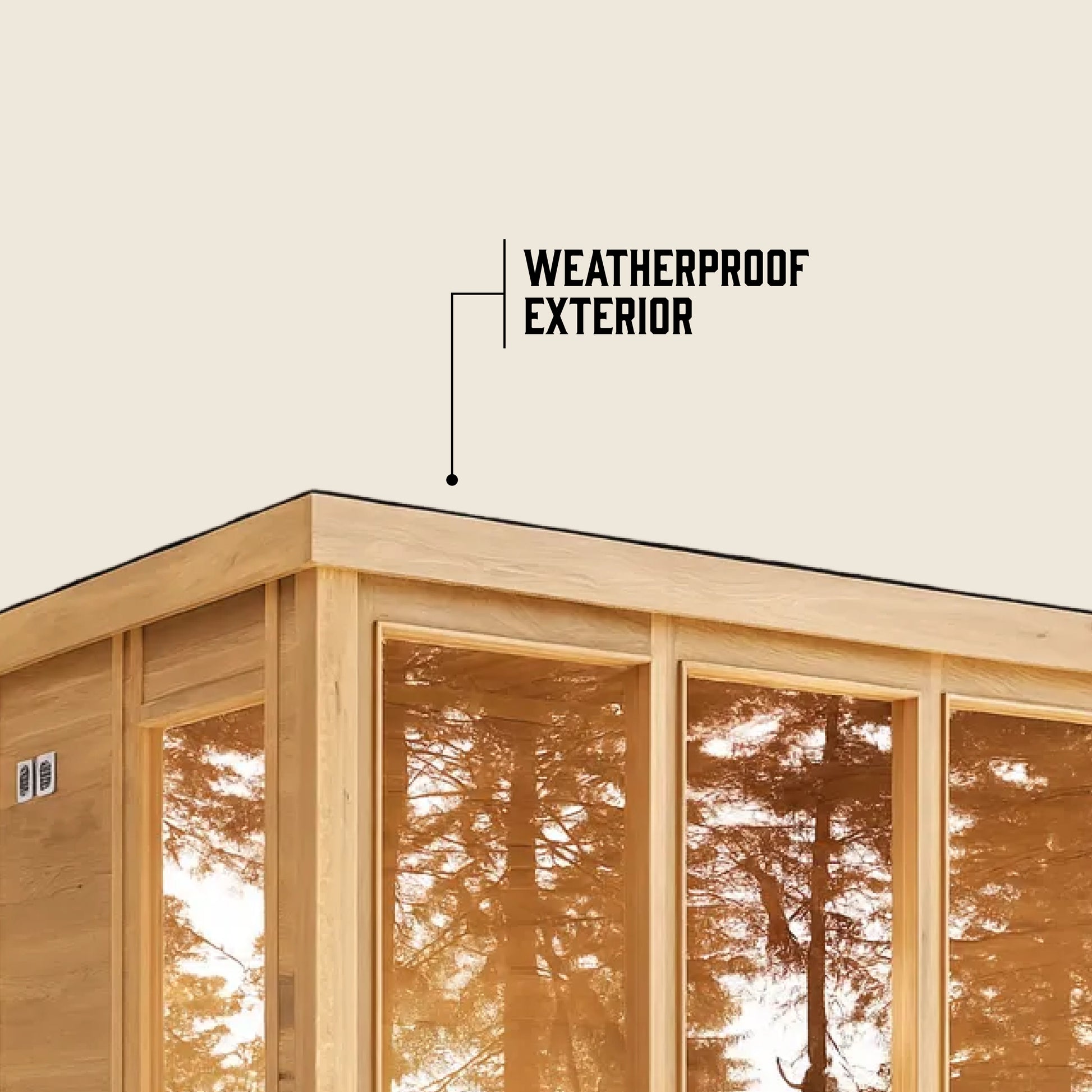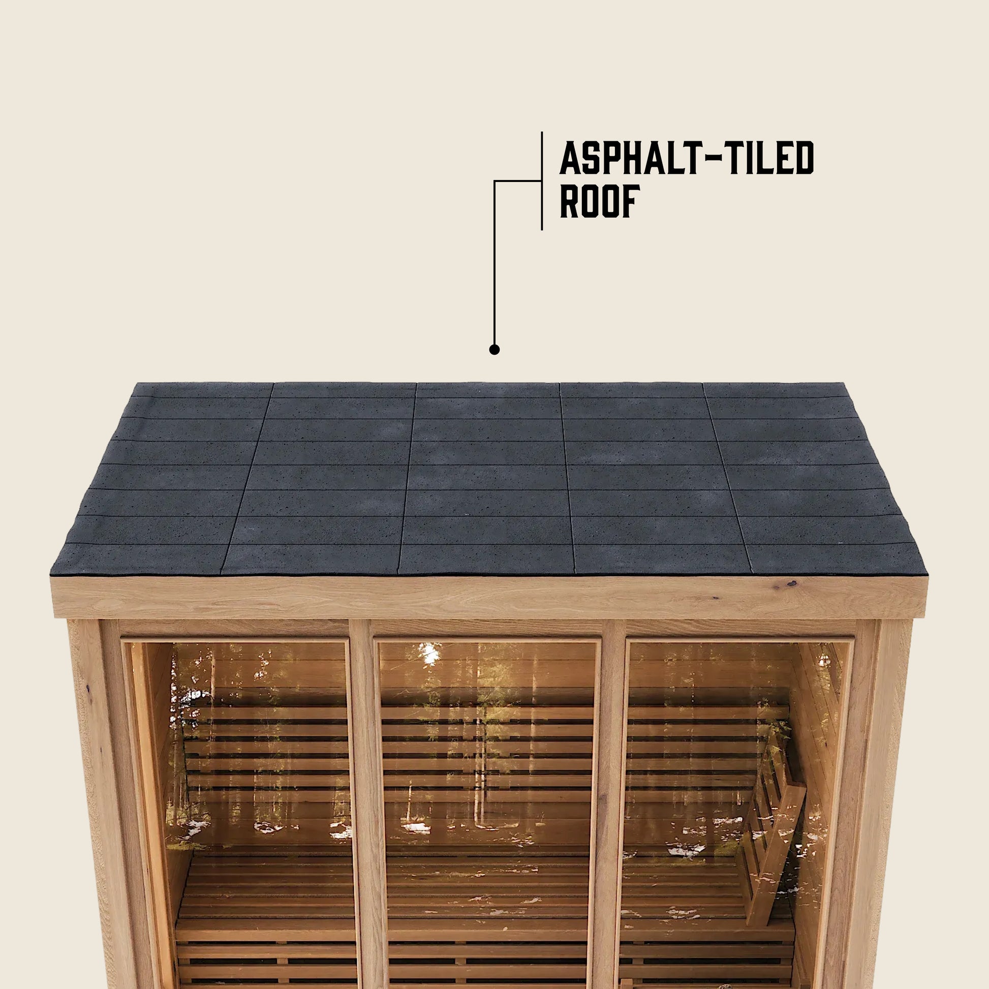 Yes. The sauna features an EPDM rubber roof with asphalt tiles and sealed gaps using waterproof glue to prevent leaks.